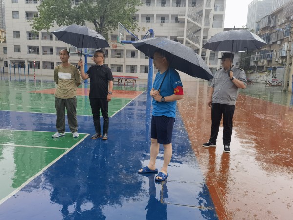 副校长李向伟与综治办主任苗畬检查操场积水情况2.jpg