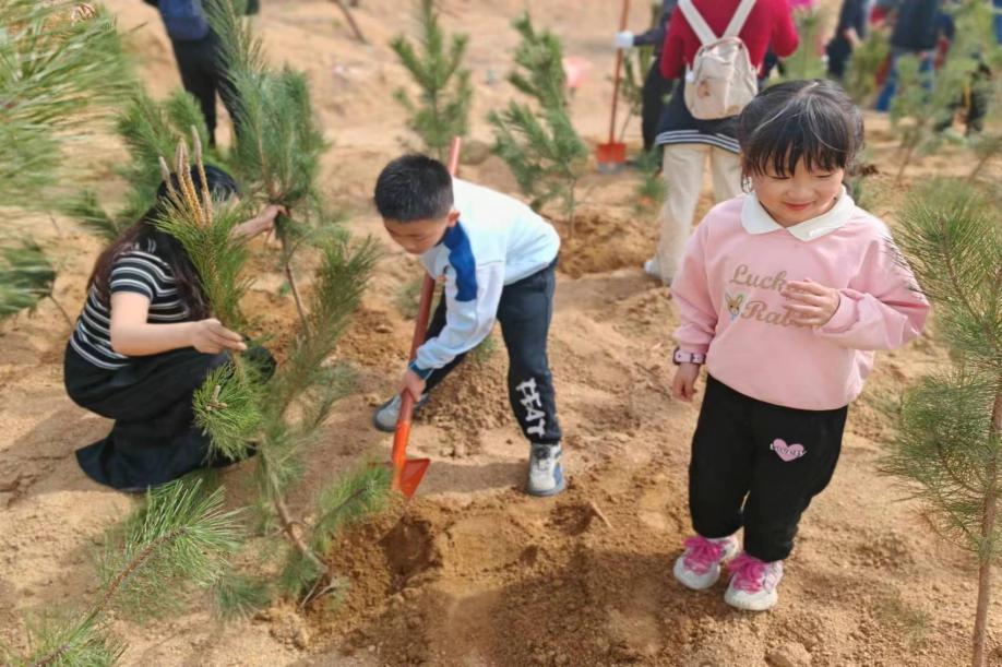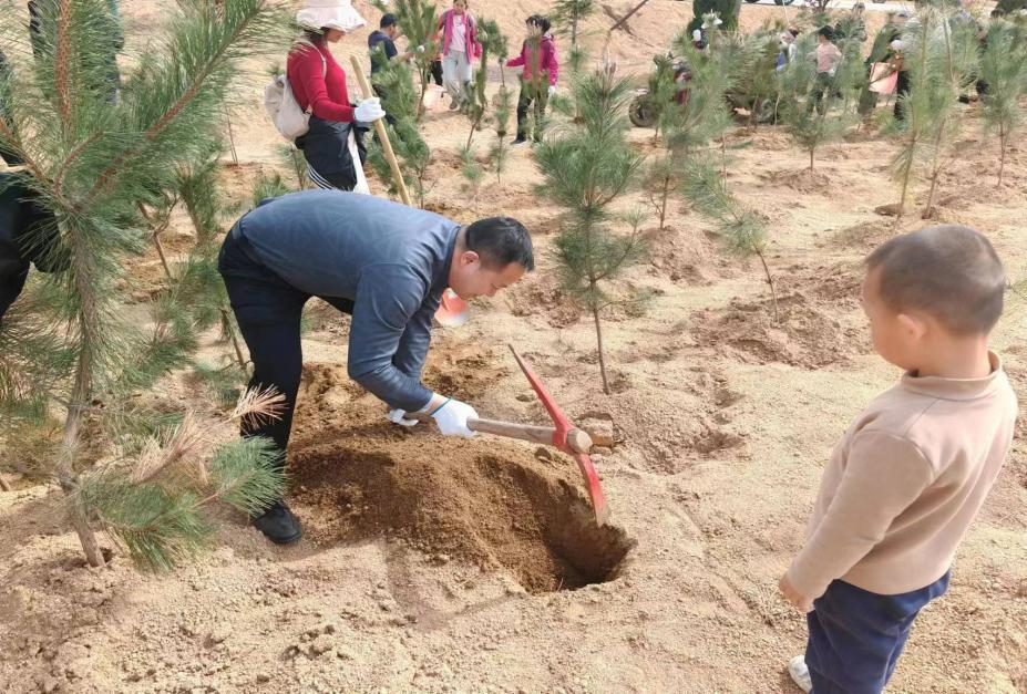 教职工带孩子体验植树乐趣
