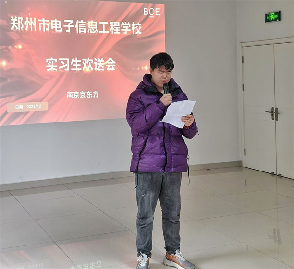 12 月 10 日,郑州市电子信息工程学校校长韩兴华、副校长高勤华、招生就业办曹源老师前往南京京东方显示技术有限公司探望我校 22 级实习学生,至此近 6 个月的实习圆满落下帷幕。