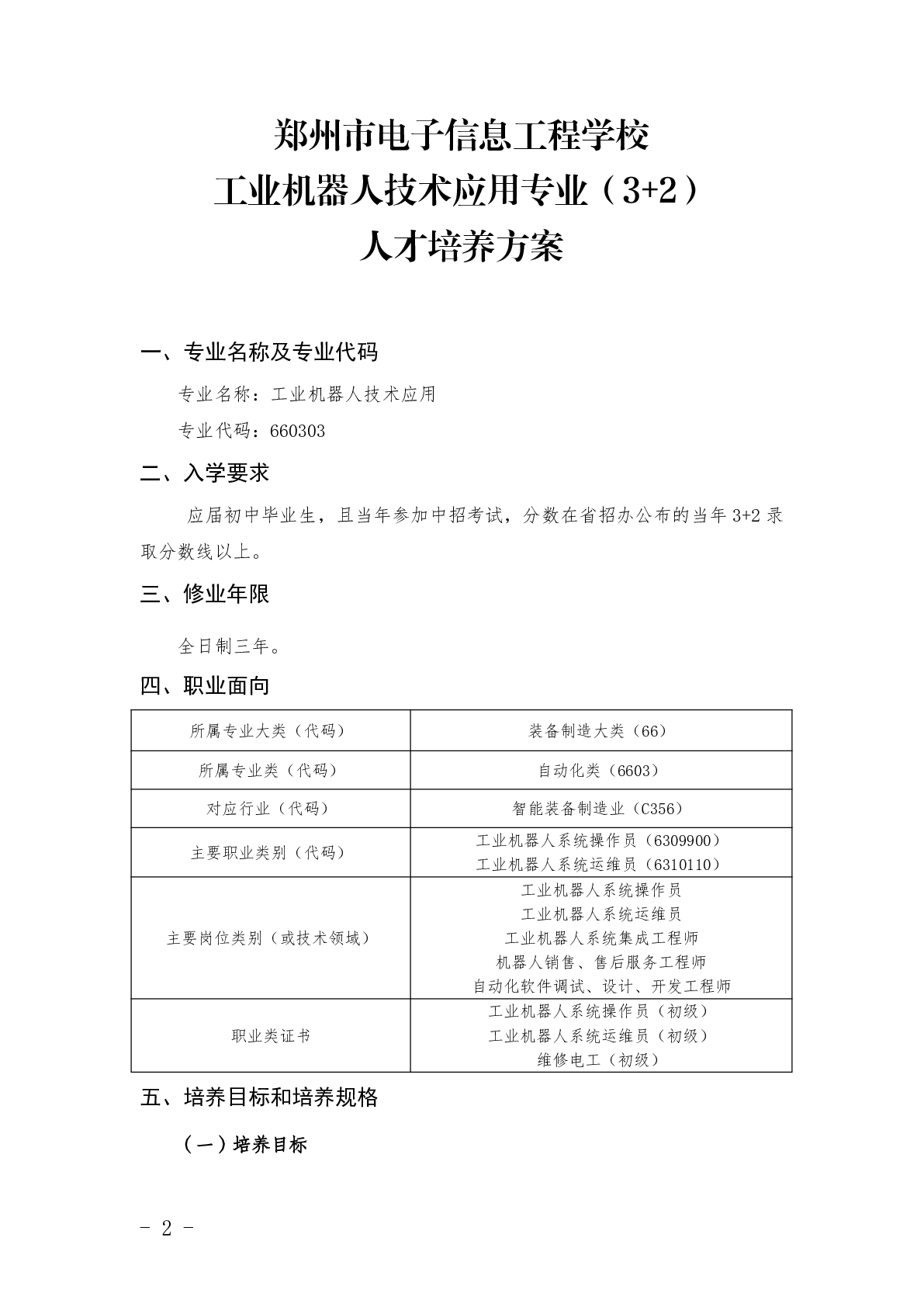 工业机器人技术应用专业(3+2)人才培养方案(2025)