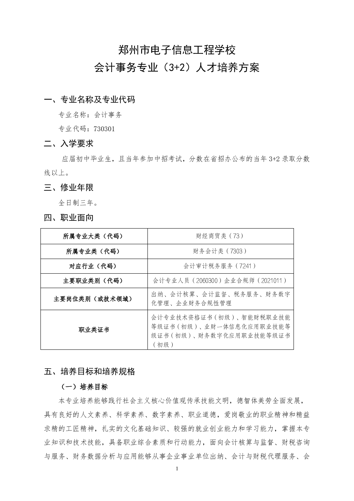 会计事务专业(3+2)人才培养方案(2025)