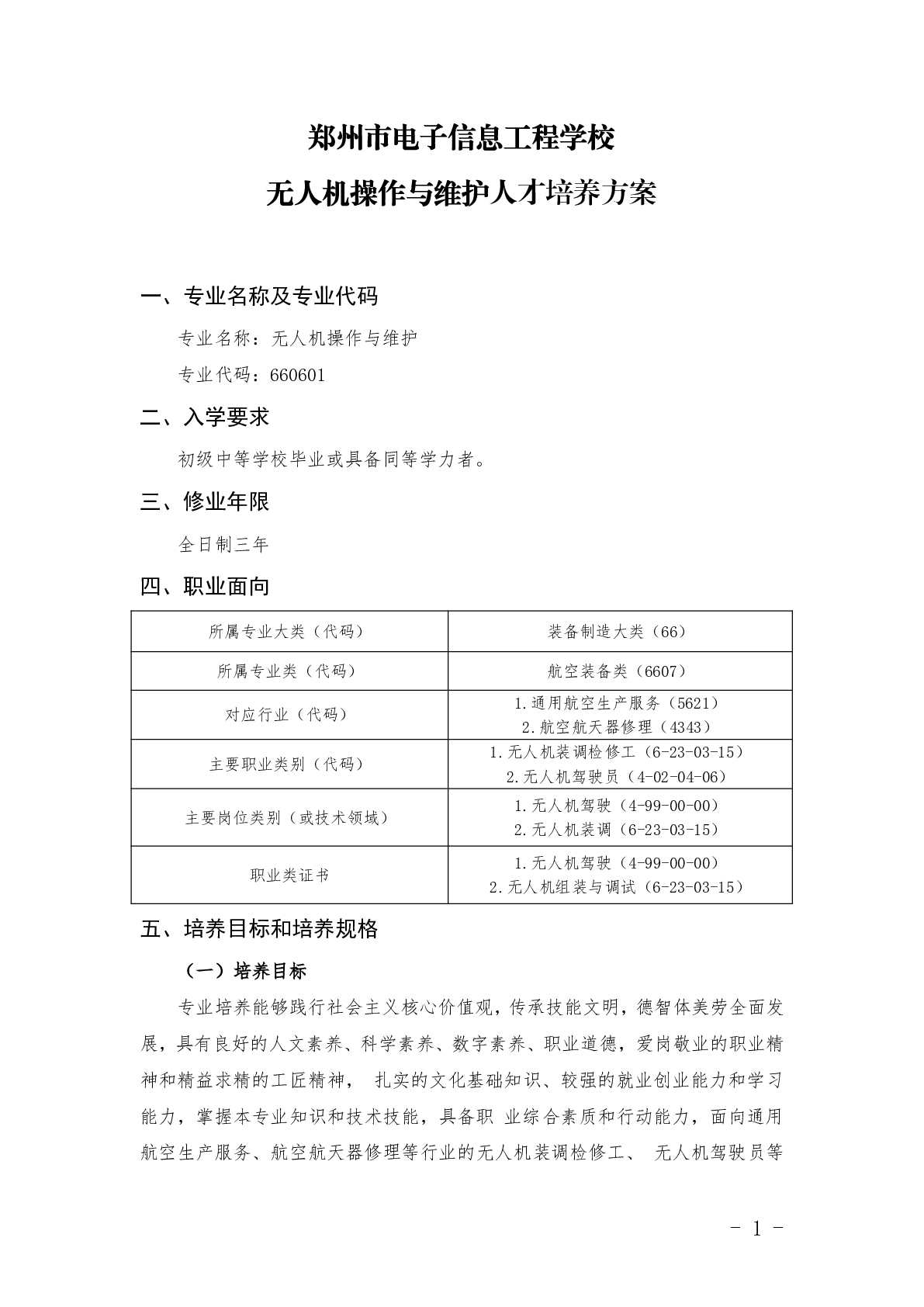 无人机操控与维护专业人才培养方案(2025)